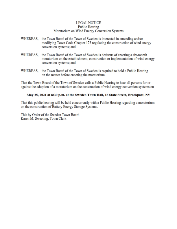 Town Board Public Hearing - Local Law - Wind Energy Systems