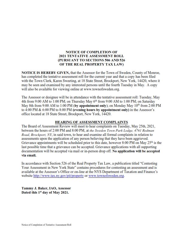 Assessment Grievance Day - Lodge at Sweden Town Park