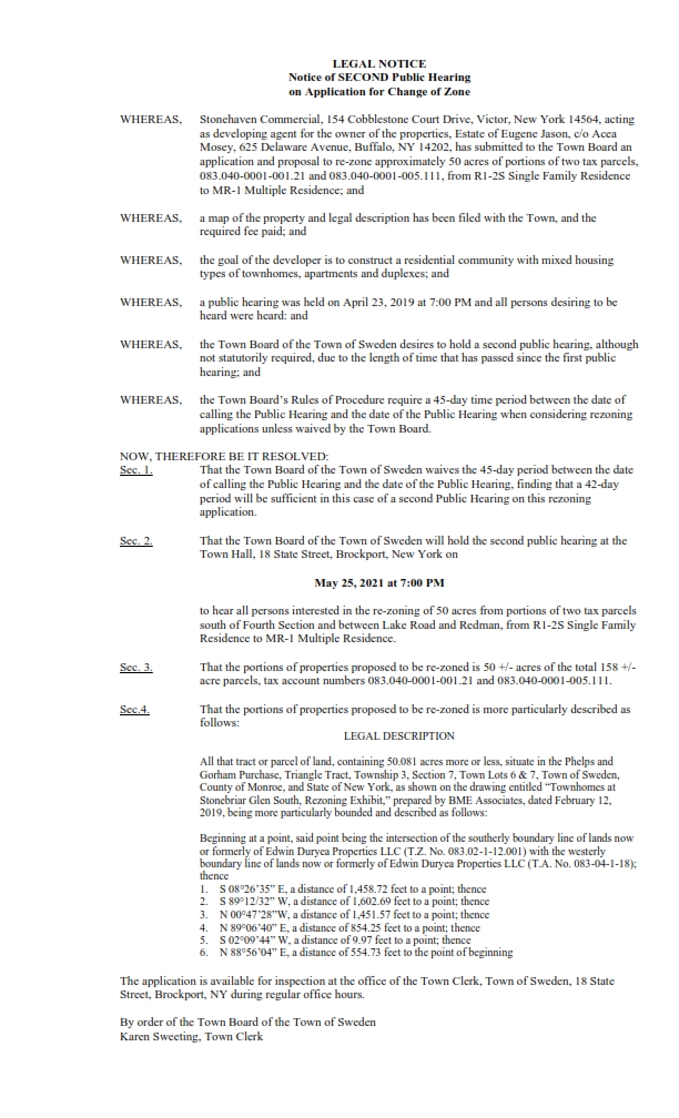Town Board - Public Hearing - Rezone south of Fourth Section