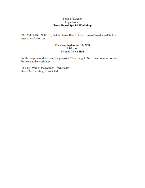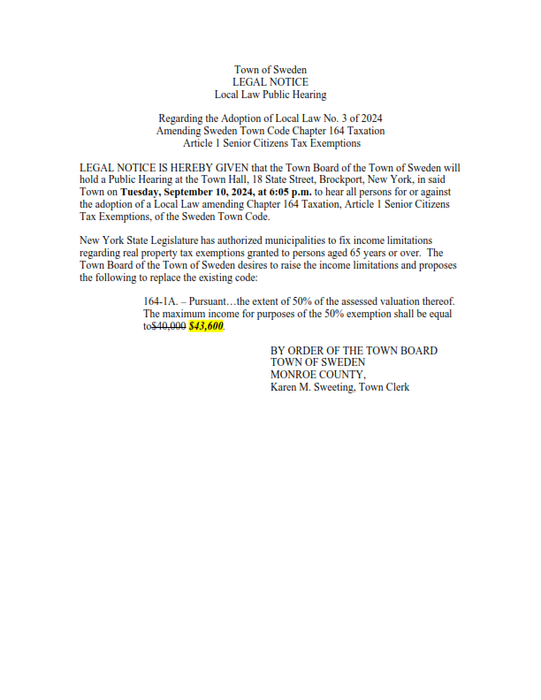 Town Board Public Hearing - Local Law - Amend Chapt. 164 Taxation
