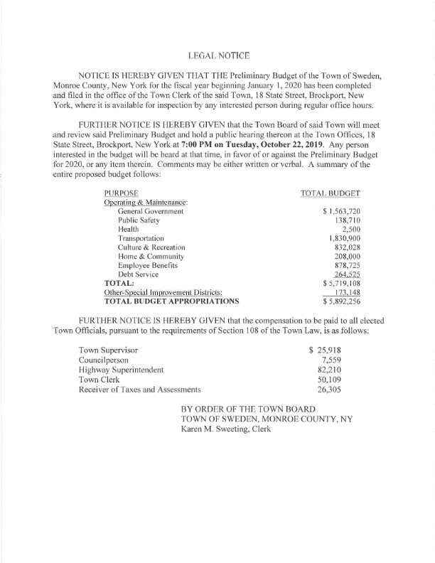 Town Board Public Hearing - Budget