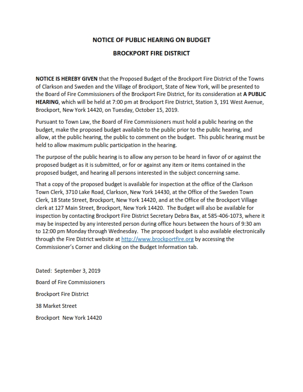 Brockport Fire District Public Hearing