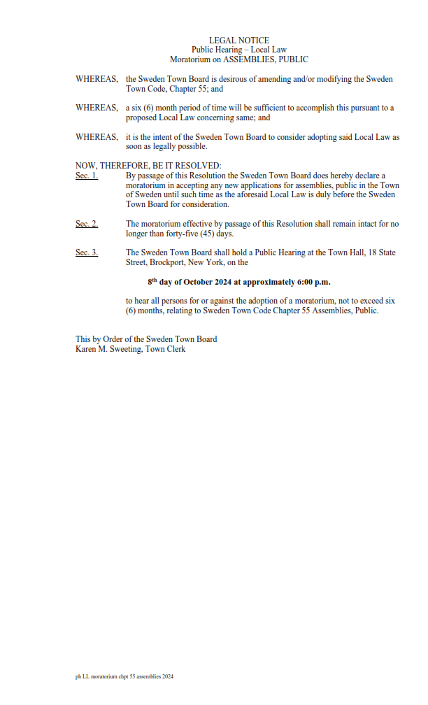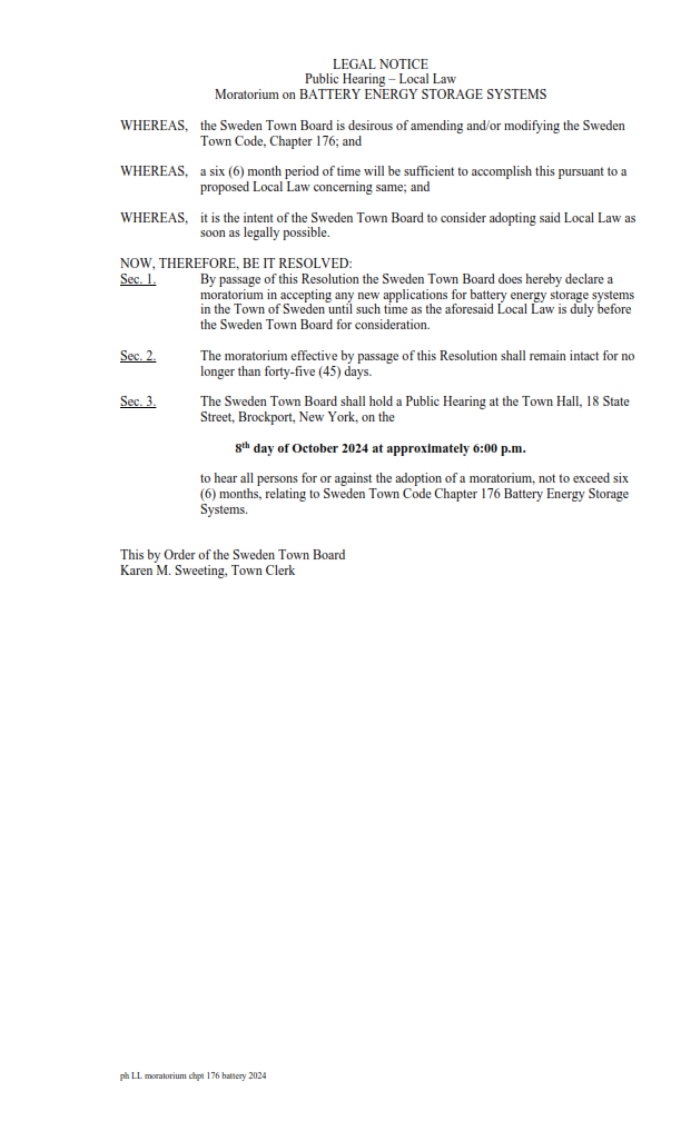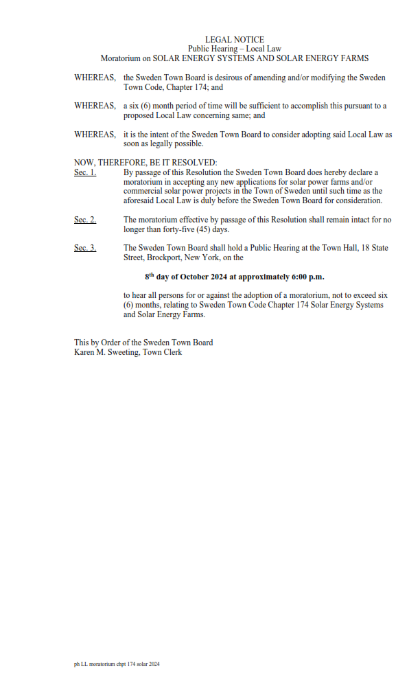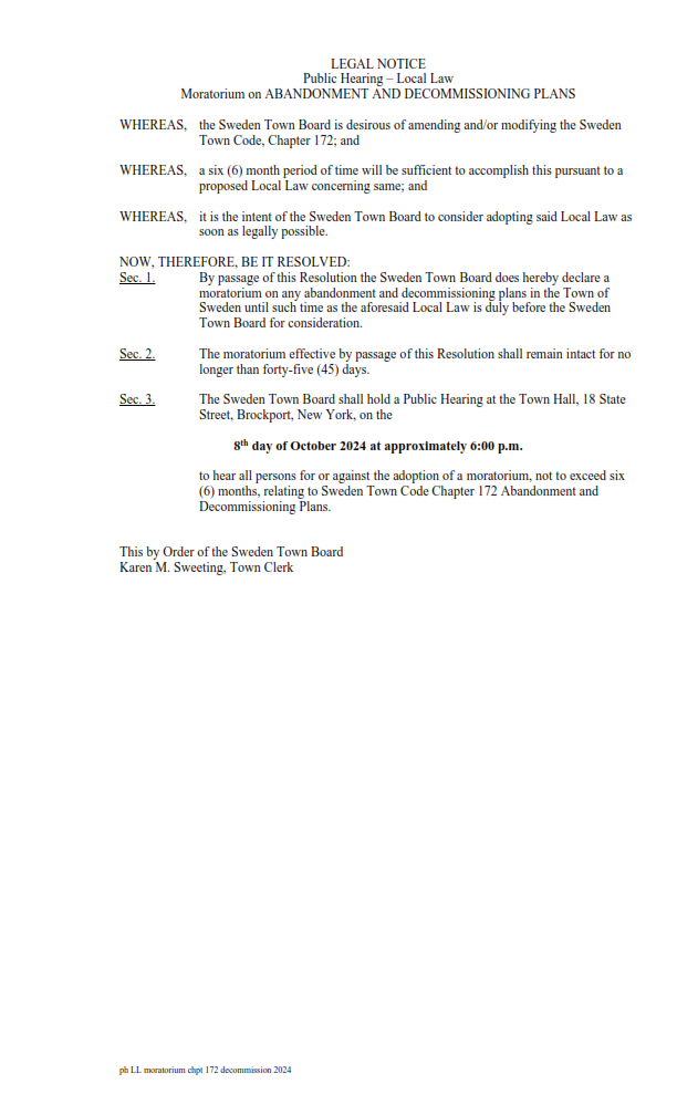 Town Board Public Hearing Moratorium Decommissioning Plan