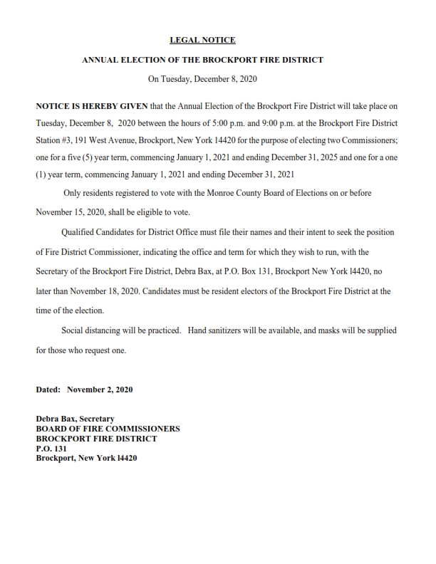 Brockport Fire District Annual Election